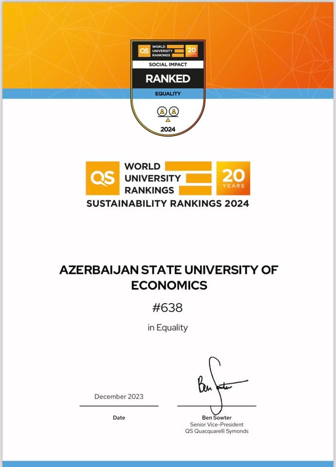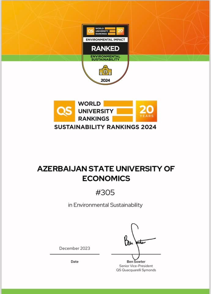 UNEC QS Dayanıqlılıq Reytinqi 2024 üzrə Azərbaycanda birincidir!