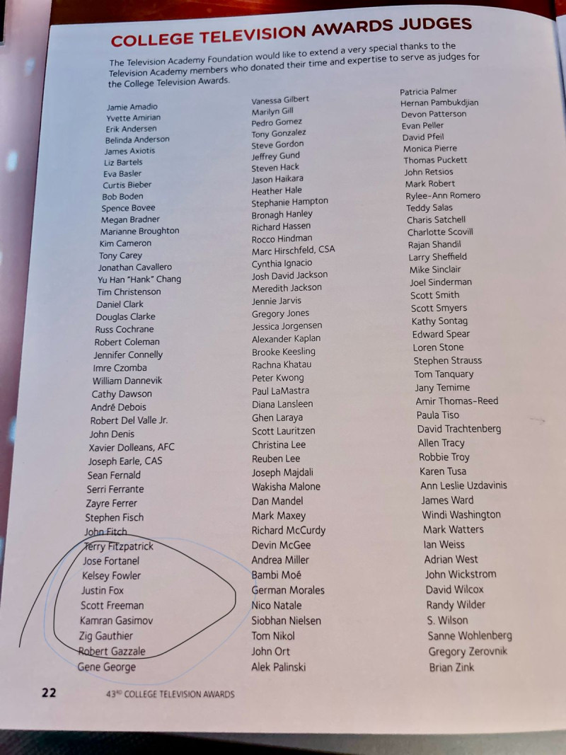 Azərbaycan Dövlət Mədəniyyət və İncəsənət Universitetinin müəllimi, Real Təhlil İnformasiya Mərkəzinin proqramlaşma departamentinin müdiri, ‘’Cinema Radio’’ Kino Radio Kanalının rəhbəri, Amerika Televiziya Sənətləri və Elmləri Akademiyasının üzvü Kamran Qasımov Los-Angelesdə Amerika Televiziya Sənətləri və Elmləri Akademiyası və Televiziya Fondunun təsis etdiyi 43-cü Kollec Televiziya ‘’College Television Awards’’ mükafatlarının təqdim etmə mərasimində, münsiflər heyətinin üzvü kimi iştirak edib.