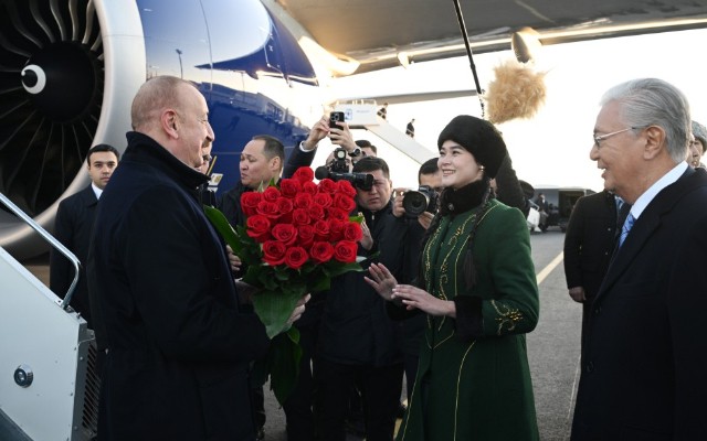 İlham Əliyev Qazaxıstana getdi - Tokayev qarşıladı + FOTOLAR