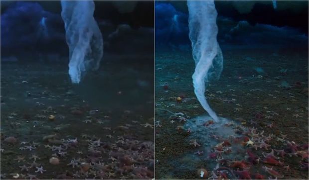 Dənizin altında çəkilən sualtı buz saçağı görənləri heyrət içində qoyur.