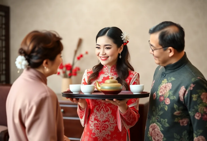 Çin mədəniyyətində toy mərasimləri zəngin adət-ənənələrlə doludur. Bu mərasim və şənliklərdə düyü şərabı xüsusi rol oynayır. Çində düyü şərabı qədim tarixə malik olan və xüsusi mərasimlər üçün hazırlanan ənənəvi bir içkidir. Toy mərasimlərində gəlinə düyü şərabı təqdim etmək də bu ölkədə ən qədim adətlərdən biridir.