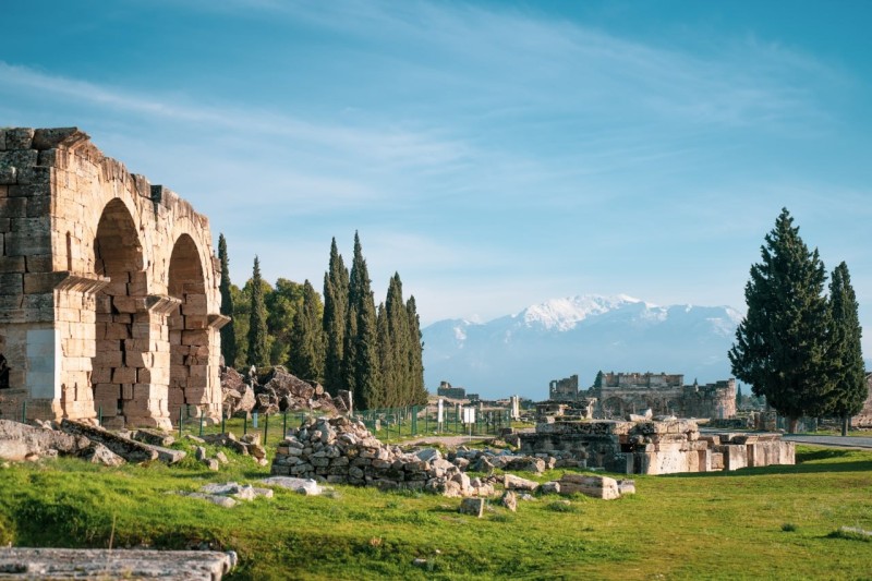 Dənizlidəki Pamukkale travertenlərinə bitişik Hierapolis antik dövrdə əhəmiyyətli bir müalicə və sağlamlıq mərkəzidir. İki min il əvvəl Perqam Krallığında travertinlər diqqət çəkmiş və Perqamenlər ərazidə inşa etməyə başlamışlar. Qədim şəhər Perqamın əfsanəvi qurucusu Telefosun arvadı Hieranın şərəfinə Hierapolis adlanırdı. Hierapolisdəki ən diqqətəlayiq tikililərə Roma hamamı və qədim teatr daxildir. Bundan əlavə, sütunlar və mərmərlərdən ibarət şəhərin Qədim Hovuzu, Misir Kraliçası Kleopatranın ləzzət aldığı iddia edilən eyni isti (36 dərəcə) sulara qərq ola bilən ziyarətçilərə tez-tez açıqdır.