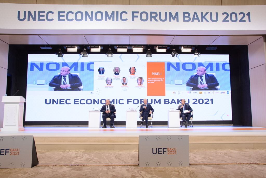 Paneldə çıxış edən UNEC-in rektoru professor Ədalət Muradov hər il keçirilməsi nəzərdə tutulan Forumun ölkəmizin gələcək inkişafı baxımından əhəmiyyət kəcb edən məsələlərin müzakirə platformasına çevrilməsini hədəflədiyini deyib. Forumun həm qlobal, həm də milli müstəvidə çox böyük tarixi hadisə və proseslərin yaşandığı bir dövrə təsadüf etdiyini, uzun illərdir həllini gözləyən ən böyük milli probleminin həll olunduğunu və Qarabağın işğaldan azad edildiyini deyib. Rektor müzəffər Ali Baş Komandan İlham Əliyevin rəhbərliyi ilə əldə edilmiş möhtəşəm Zəfərin Azərbaycanın və bütövlükdə Cənubi Qafqazın inkişafı üçün yeni perspektivlər açdığını, Qarabağın yenidənqurma prosesinə misli görülməmiş sürətlə start verilməsinin dünyanın diqqətini bir daha Azərbaycana, onun iqtisadi imkanlarına və iqtisadi qüdrətinə yönəltdiyini bildirib.