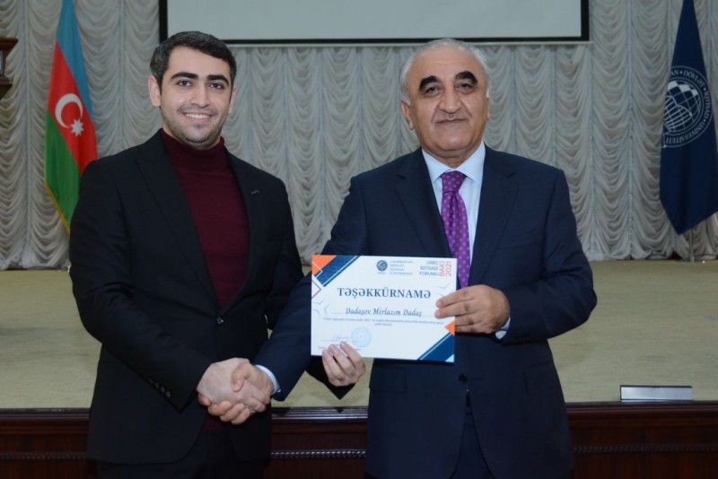 UNEC İqtisadi Forumun təşkilatçıları və tələbə könüllülər mükafatlandırıldı