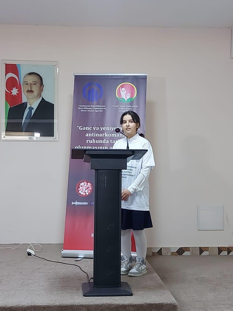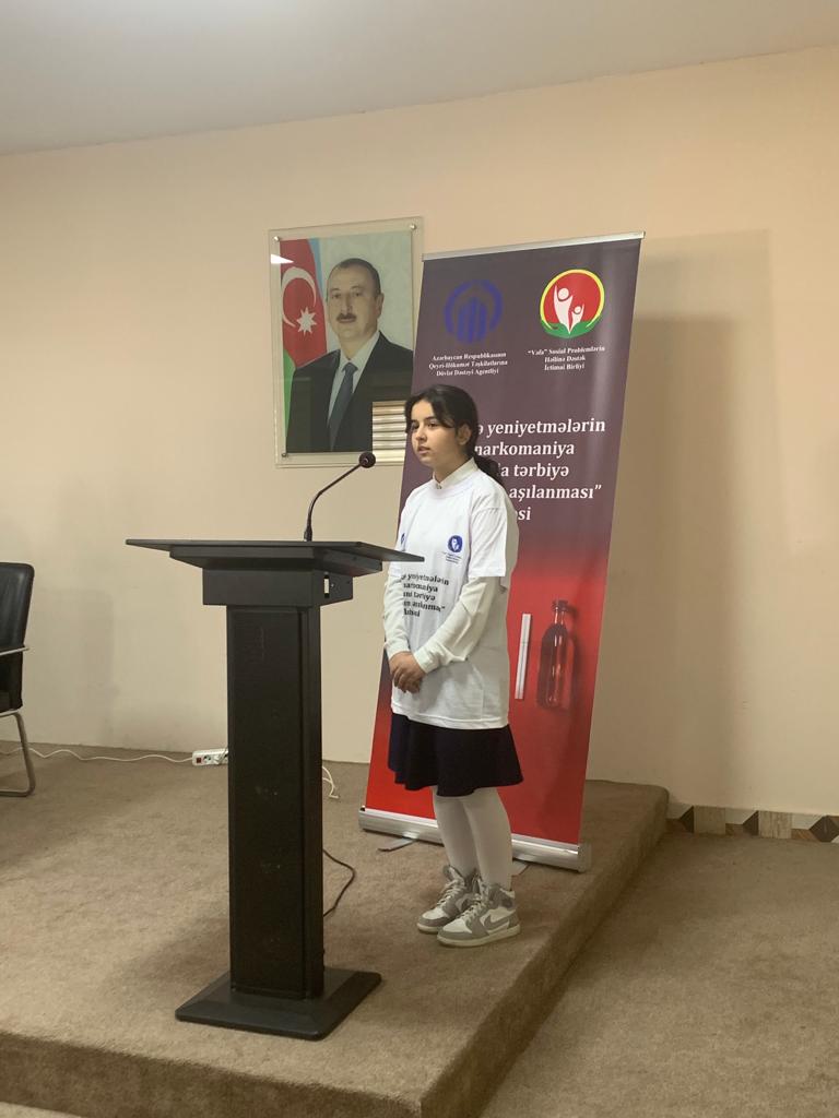 Daha sonra məktəbin direktoru Səlim Məmmədov çıxışında şagirdləri narkotik vasitələrdən uzaq durmaları ilə bağlı tövsiyələr verib. Narkomaniyanın birbaşa onların gələcək həyatlarına necə mənfi təsir edəcəyini, narkotik vasitələrdən istifadə etməklə öz sağlamlıqlarını təhlükə altına salacaqlarını bildirib. Tədbir gedişatında məktəbin psixoloqu Samirə Allahverdiyeva və məktəbin tədris üzrə dərs hissə müdiri Cəlalə Rzayeva çıxış edərək sağlam həyat tərzinin təbliğ olunması, narkomanlığın fəsadları haqqında gənclərdə düzgün təsəvvürün formalaşması üçün maarifləndirici tədbirlərin mütəmadi olaraq keçirilməsini, eyni zamanda ictimaiyyətin diqqətinin narkomanlıqla bağlı problemin həllinə cəlb olunmasının vacibliyini vurğulayıblar.