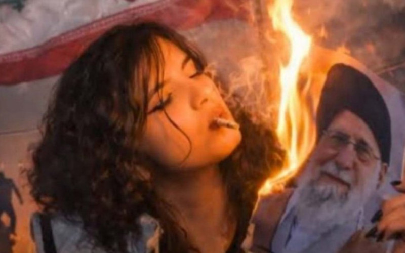 Adalet.az xəbər verir ki, iranlı qadınlar küçələrdə ölkənin Ali dini lideri Seyid Əli Xameneinin fotosuna od vurur, daha sonra onunla siqaret yandırırlar.
