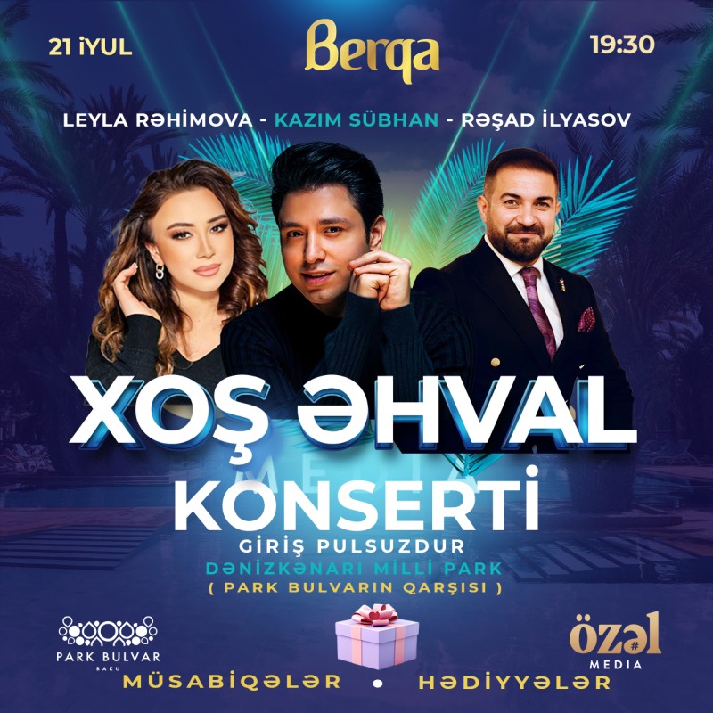 “Berqa” bu həftəsonunu da sizinlə birlikdə xoş əhval keçirəcək. Dənizkənarı Milli Parkda “Park Bulvar”ın qarşısında silsilə konset proqramıları davam edir. Növbəti konsert proqramı 20 və 21 iyul tarixində saat 19:30-da baş tutacaq.
