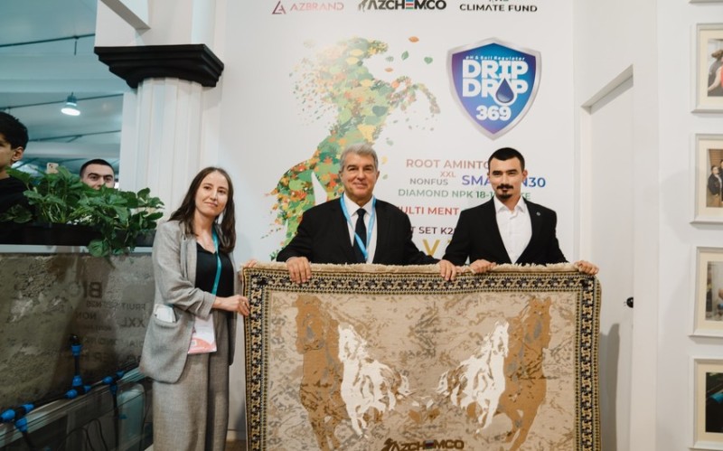 BMT-nin İqlim Dəyişmələri üzrə Çərçivə Konvensiyasının Tərəflər Konfransının 29-cu sessiyasında (COP29) iştirak məqsədi ilə Bakıya gələn İspaniyanın "Barselona" klubunun prezidenti Xuan Laporta Azərbaycanda gübrələrin və bitkilərin mühafizə vasitələrinin ilk yerli istehsalçısı olan "AZCHEMCO" şirkətinin pavilyonun ziyarət edib.