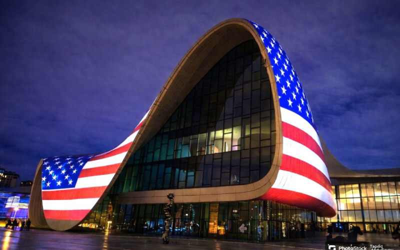 Heydər Əliyev Mərkəzi ABŞ bayrağı ilə işıqlandırılıb