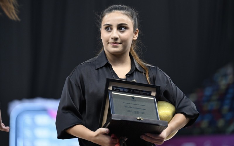23 yaşlı idmançı son dəfə xalça üzərinə çıxaraq ayrı-ayrı alətlərdə bacarığını nümayiş etdirib.