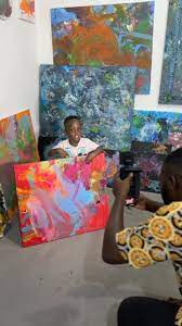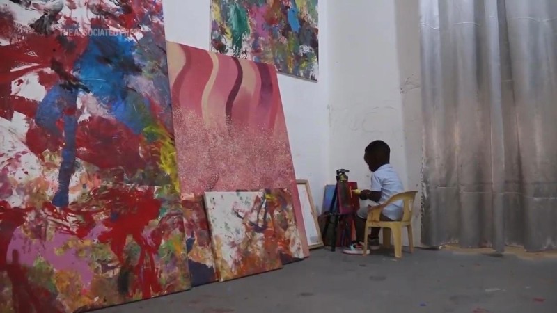 Qeyd olunur ki, oğlan nadir abstrakt əsərlər yaratmaq üçün əlləri və bədəni ilə kətan üzərinə akril boya çəkmək texnikasından istifadə edir.