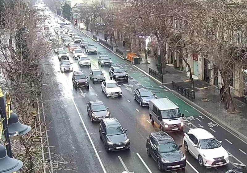 Bakının bir sıra yollarında tıxac yaranıb.