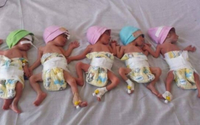 Körpələr hamiləliyin 28-ci həftəsində dünyaya gəlib. İlk olaraq 990 qram çəkidə oğlan uşağı doğulub, daha sonra isə çəkiləri müvafiq olaraq 1 020 qram, 970 qram, 1 030 qram və 870 qram olan dörd qız dünyaya gəlib.