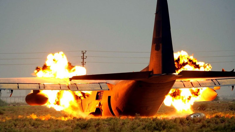Yüksək gərginlikli elektrik xətlərinə toxunan təyyarə alışır.