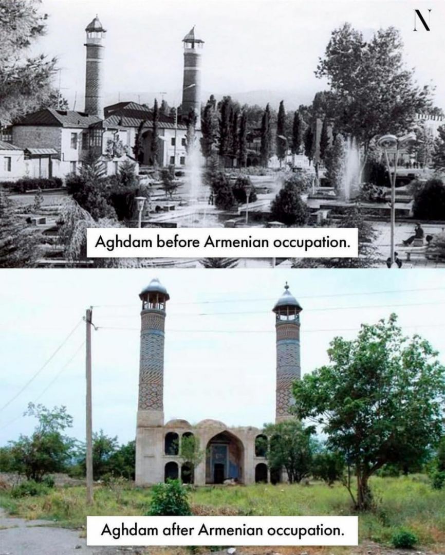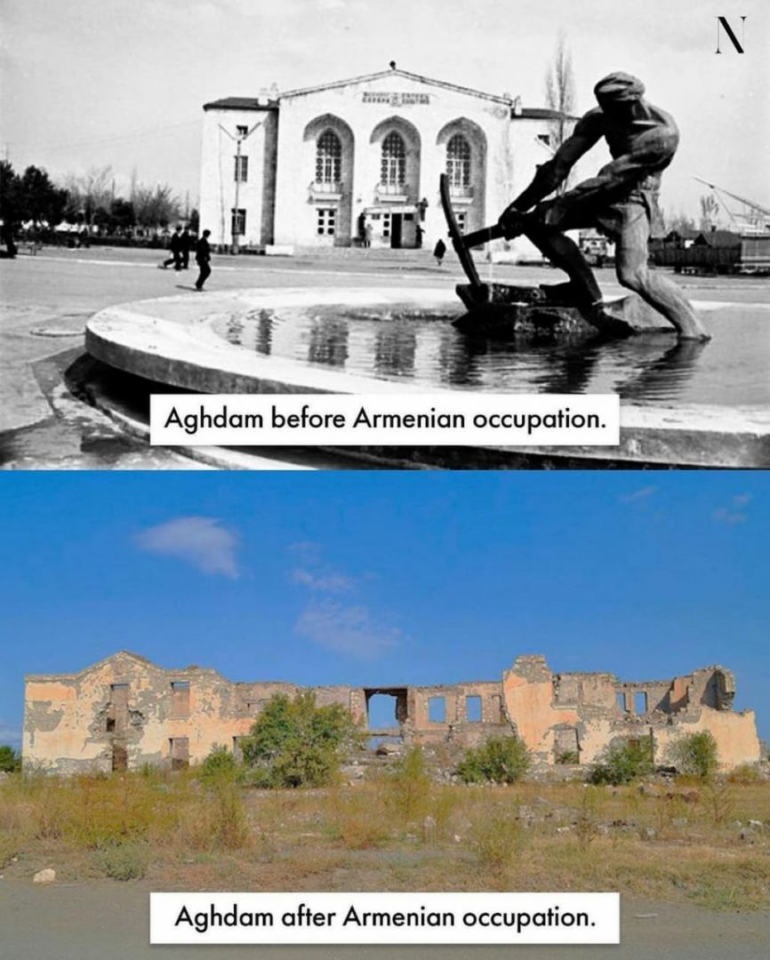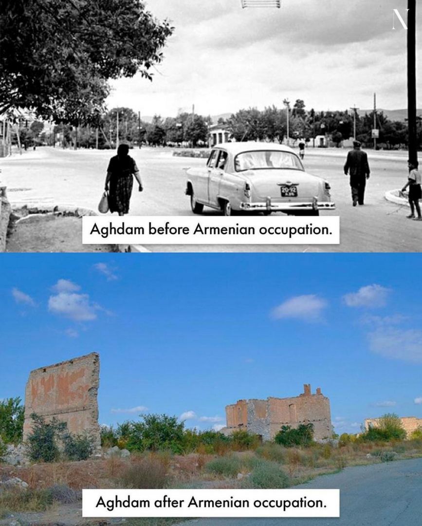 Ağdam erməni vandalizmindən əvvəl və sonra - FOTOLAR