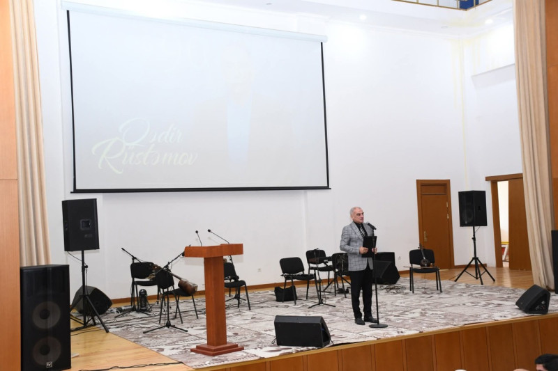 Tədbirdə öncə Ümummilli lider Heydər Əliyevin, torpaqlarımızın ərazi bütövlüyü uğrunda canlarını fəda etmiş Vətən övladlarının və mərhum sənətkarın əziz xatirəsi bir dəqiqəlik sükutla yad edilmiş, daha sonra Qədir Rüstəmovun həyat və yaradıcılığından bəhs edən film nümayiş etdirilmişdir.