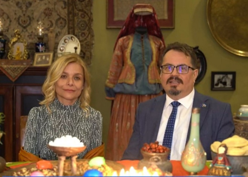 Səfir sonda xanımıyla Novruz ənənələrindən olan yumurta döyüşdürüb.