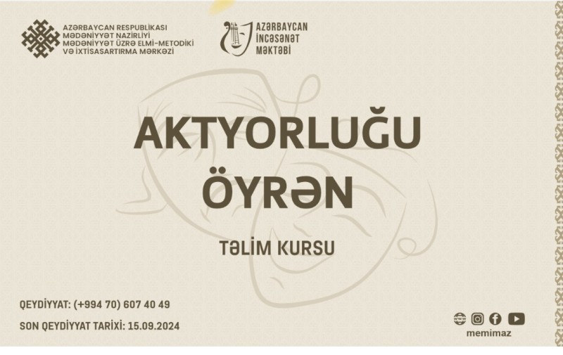 Mədəniyyət Nazirliyinin Mədəniyyət üzrə Elmi – Metodiki və İxtisasartırma Mərkəzi və Azərbaycan İncəsənət Məktəbi “Aktyorluğu öyrən” layihəsinə start verir.