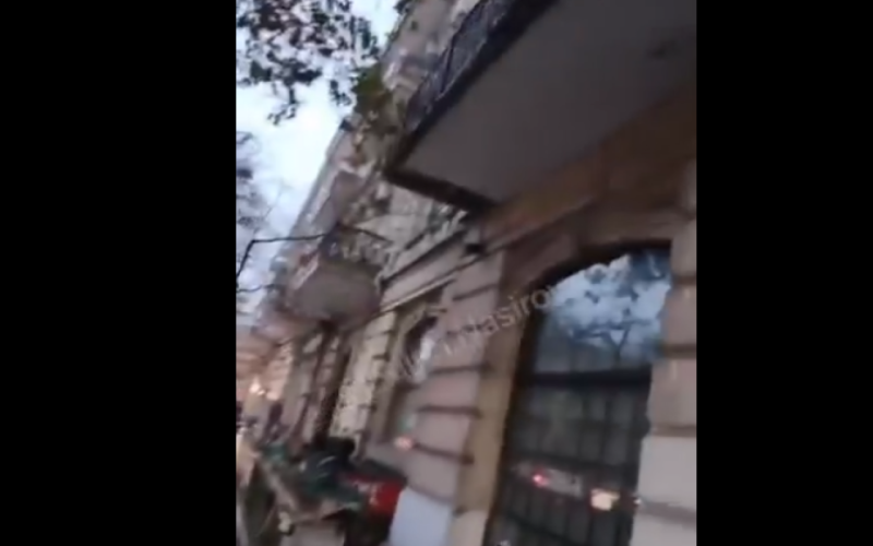 Bakının mərkəzində eyvan uçdu - Xəsarət alan var - VİDEO