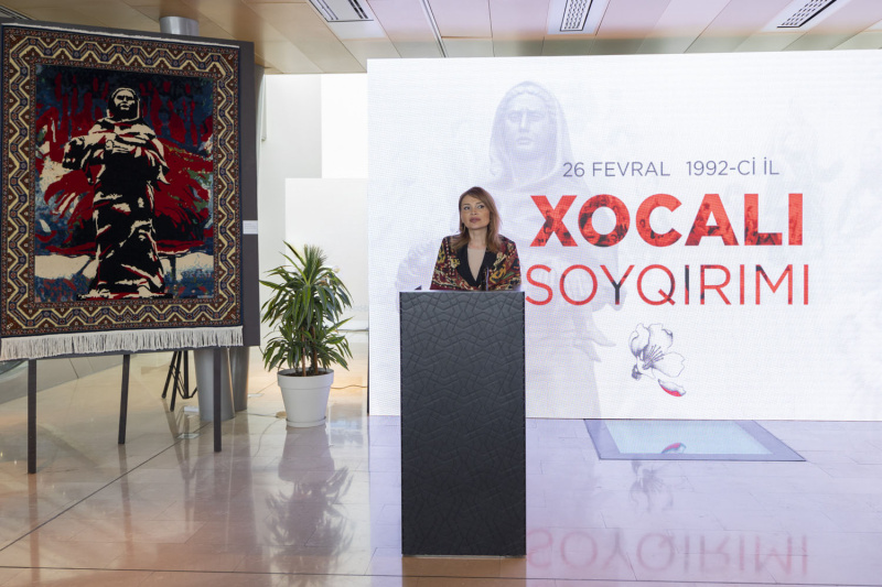 Anım mərasimində çıxış edən Milli Xalça Muzeyinin direktoru Əminə Məlikova Xocalı soyqırımının XX əsrin ən qanlı cinayətlərindən biri kimi bəşər tarixinə düşdüyünü, bu faciənin xalqımızın yaddaşında dərin izlər buraxdığını diqqətə çatdırıb. Təcavüzkar Ermənistan dövlətinin təkcə Azərbaycan xalqına deyil, mədəni irsimizə və tariximizə qarşı terror siyasəti yürütdüyünü xatırladan direktor işğalçılıq siyasəti yürüdən ermənilərin torpaqlarımızla yanaşı, milli mədəniyyət nümunələrimizi, eləcə də Qarabağ xalçalarını mənimsəməyə, özününküləşdirməyə cəhd göstərdiklərini, lakin bütün bu əməllərə Azərbaycan dövləti və xalqı tərəfindən layiqli cavabların verildiyini qeyd edib.