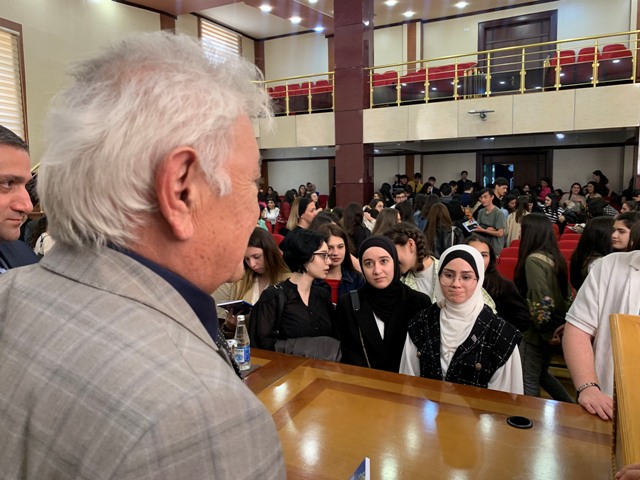 Yazıçı çıxışını bitirdikdən sonra tələbələrin suallarını cavablandırıb. Tələbələr xüsusən "Dolu" romanı, yazıçının şəxsi həyatı ilə bağlı suallar ünvanlayıblar.