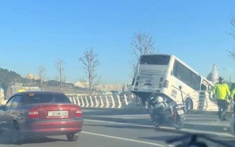 Bakının mərkəzində sərnişin avtobusu qəzaya uğrayıb.