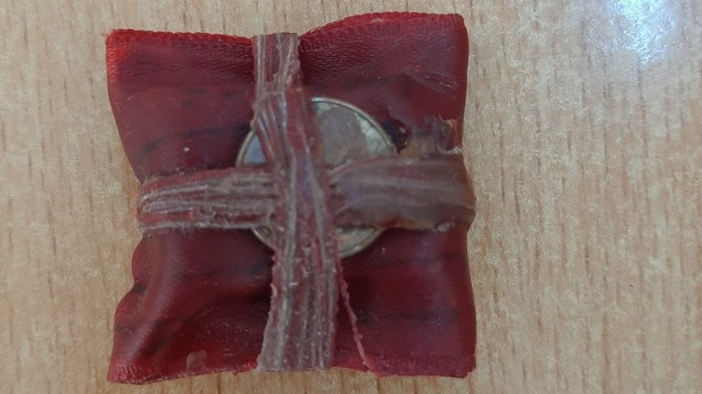 “Qırmızı parçaya nəyisə büküb üzərinə qəpik qoyaraq sapla + (plus) formasında çoxlu sarıyıblar. Daha sonra parçanın üzərinə şam əridib töküblər. Təsəvvür edin, bu cadu-pitini 4 il universitetdə ali təhsil alan bir tələbə Bakıda keçirilən magistr imtahanına gətirib”, - deyə paylaşımda yazılıb.