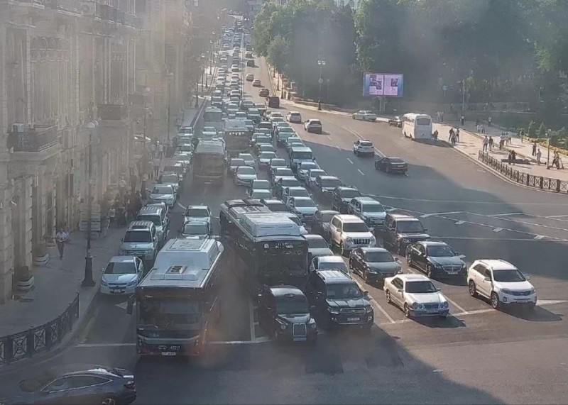 Bakıda səhər saatlarında nəqliyyatın hərəkətində sıxlıq yaranıb.