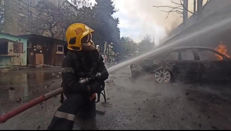 Bakıda qəza güclü yanğına səbəb oldu - VİDEO - YENİLƏNİB