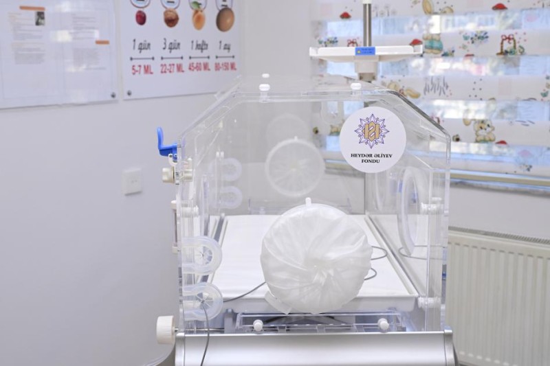 Tibb müəssisəsindəki şəraitlə tanışlıq zamanı Perinatal Mərkəzə Heydər Əliyev Fondu tərəfindən küvəzlər və ultrasəs müayinə aparatı hədiyyə olundu.