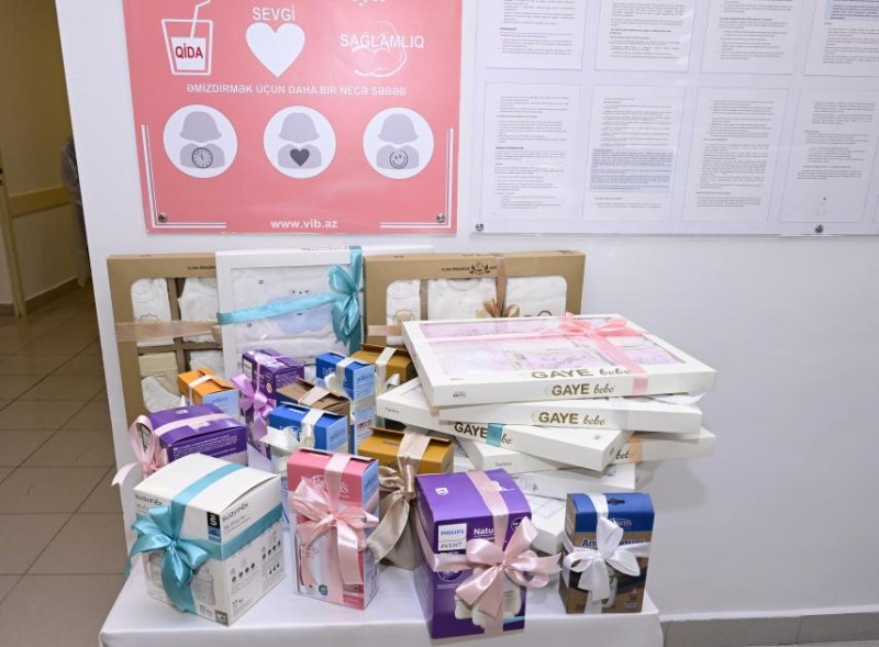 Yeni doğulmuş körpələri ziyarət zamanı analara Fondun hədiyyələri də təqdim edildi.