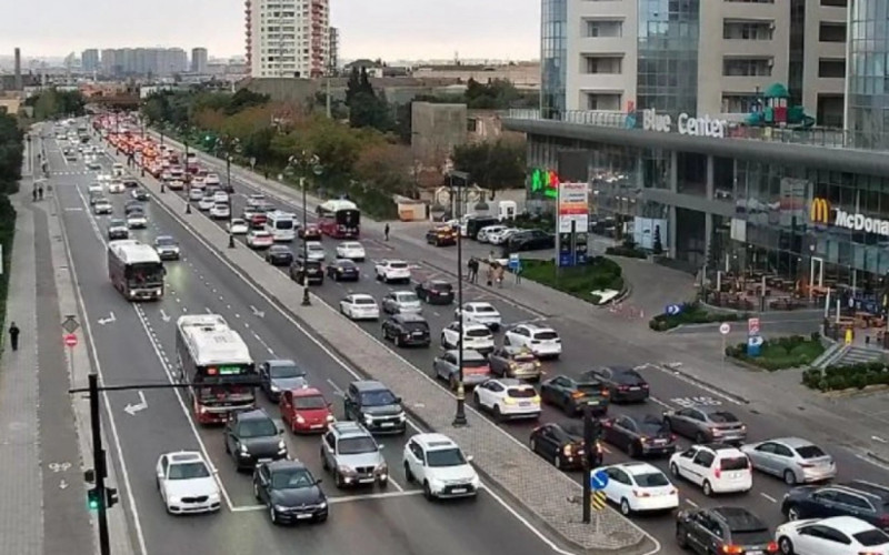 13. Heydər Əliyev prospektində, Koroğlu metro stansiyasının qarşısından Heydər Əliyev Mərkəzinin yanına qədər əsas və kənar yolda sıxlıq