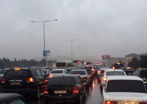 Adalet.az xəbər verir ki, yağışlı hava şəraiti yolda yaranan sıxlığı daha da artırıb.