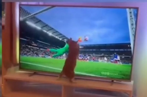 Belə ki, televizorda qarşılaşmaya baxan pişiyin topun hərəkəti istiqamətində hərəkətini çəkən ev sahibi kadrları internetdə paylaşıb.