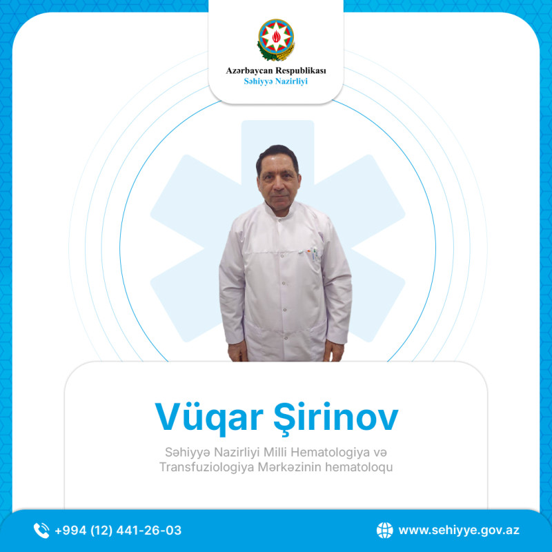 Səhiyyə Nazirliyi Milli Hematologiya və Transfuziologiya Mərkəzinin hematoloqu Vüqar Şirinov nazirliyin saytına müsahibə verib.