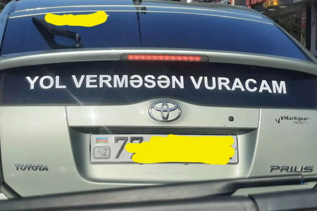 Bir daha bütün avtomobil sahiblərindən və sürücülərdən avtomobillərinə lüzumsuz yazı və fotoşəkil yapışdırmamağı xahiş edir, bununla bağlı ciddi tədbirlərin görüləcəyi diqqətlərinə çatdırılır”.