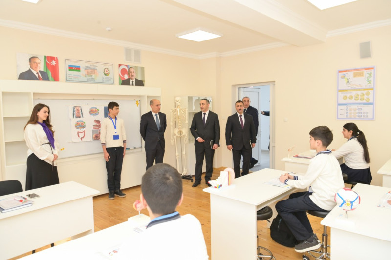 Daha sonra nazir Xocalı şəhəri 1 nömrəli tam orta məktəbdə tədris prosesini izləyib, müəllim və şagird kollektivi ilə görüşüb, burada yaradılmış şəraitlə tanış olub.