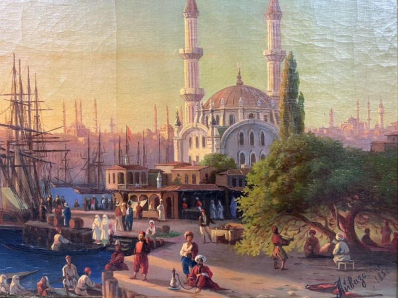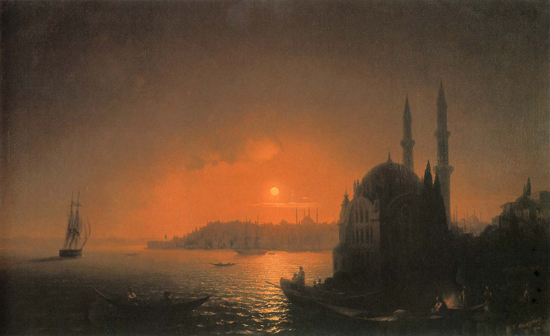 Məlumatlara görə, 1845-ci ildə Ayvazovski Osmanlı İmperiyasının paytaxtı İstanbul şəhərinə gəlmişdir. Burada sultan I Əbdülməcid tərəfindən Bəylərbəyi sarayında qarşılanmışdır. 1845–1890-cı illər ərzində Ayvazovski İstanbul şəhərinə dörd dəfə gəlmişdir. 1874-cü ildə ki, səfəri zamanı erməni əsilli memar Sarkis Balyanın Quruçeşmə adasında yerləşən malikanəsində bir aya yaxın qalmışdır. Burada qonağ olduğu bir ay ərzində I Əbdülməcid tərəfindən Dolmabağça sarayı üçün sifariş olunan tabloların hazırlanması ilə məşğul olmuşdur. 1890-cı ildə İstanbulla son səfəri zamanı sultan II Əbdülhəmidlə görüşündə Ayvazovski sultana iki əsərini hədiyyə etmişdir. 5 mindən çox tablo müəllifi olan Ayvazovskinin əsərləri dünyanın müxtəlif muzeylərində saxlanılır. Dolmabağça sarayı, Dəniz muzeyi, Hərb muzeyi, İrəvan dövlət muzeyi və Rum Ortodoks Patrikxanasında Ayvazovskinin əsərlərinin bir hissəsi saxlanmaqdadır. Bir qrup əsərləri isə şəxsi arxivlərdə qorunur.