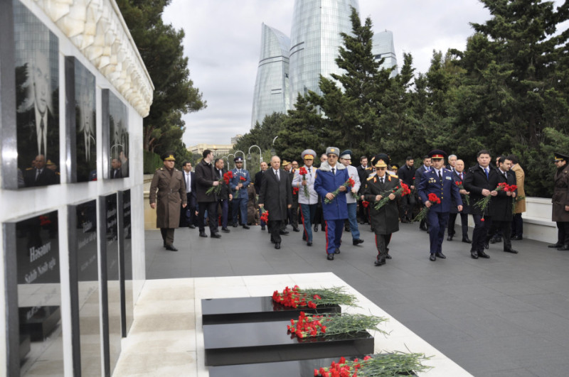 Sonra Şəhidlər xiyabanı ziyarət edilib, Azərbaycanın müstəqilliyi və ərazi bütövlüyü uğrunda canlarından keçmiş qəhrəman Vətən övladlarının məzarları üzərinə gül dəstələri düzülüb, “Əbədi məşəl” abidəsi önünə əklil qoyulub.