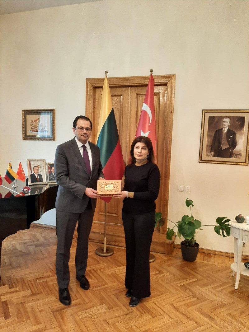 Beynəlxalq Türk Mədəniyyəti və İrsi Fondunun prezidenti Günay Əfəndiyeva Litvaya səfəri çərçivəsində Qazaxıstan Respublikasının Litva Respublikasındakı fövqəladə və səlahiyyətli səfiri Timur Urazayev və Türkiyə Respublikasının Litva Respublikasındakı fövqəladə və səlahiyyətli səfiri Barış Tantekin ilə görüşüb.