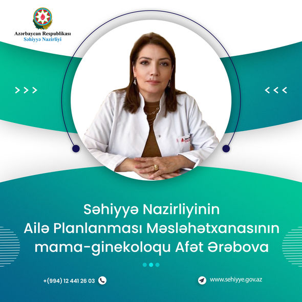 Səhiyyə Nazirliyi Ailə Planlanması Məsləhətxanasının həkim mama-ginekoloqu Afət Ərəbova nazirliyin rəsmi saytına müsahibə verib.
