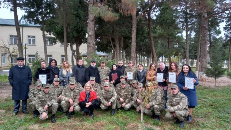 Müdafiə Nazirliyinin N saylı hərbi hissəsində təşkil edilən ağacəkmə aksiyasına başlamazdan əvvəl Ulu Öndər Heydər Əliyevin və Şəhidlərimizin ruhu bir dəqiqəlik sükutla yad edilib, dualar oxunub.