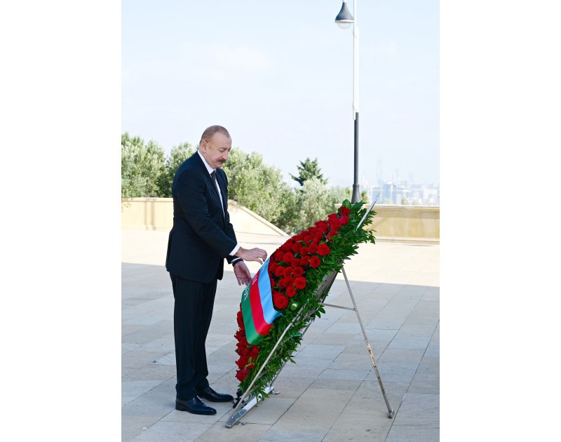 Dövlətimizin başçısı “Əbədi məşəl” abidəsinin önünə əklil qoydu.