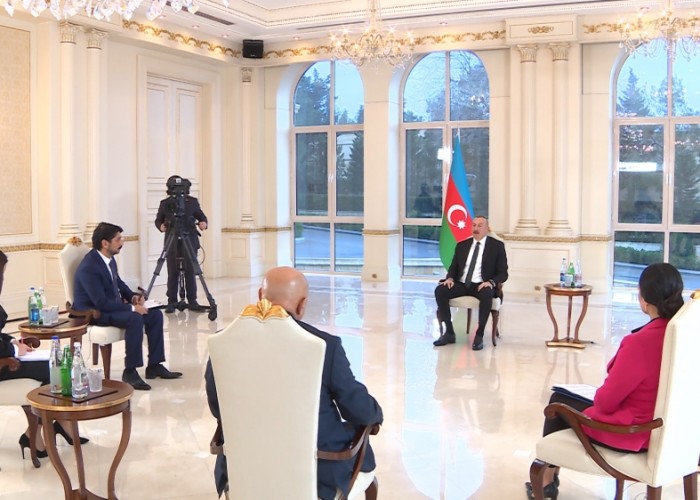 Sənan Rzayev: Cənab Prezident, Siz əvvəlki suallara cavab verəndə Azərbaycan ilə Ermənistan arasında sülhün perspektivi barədə danışarkən dediniz ki, əgər Ermənistan özündə qüvvə taparsa. Mən bir neçə məqamı bilmək istərdim. Əvvələn, Siz necə hesab edirsiniz, bu qüvvə Ermənistanın özündə formalaşır, yoxsa indiki halda Ermənistandan o qədər də asılı deyil. Məsələn, Ermənistan diasporu bu prosesə necə təsir göstərir? Cənab Prezident, müharibədən dərhal sonra Ermənistan ilə Azərbaycan arasında sülh danışıqları ilə bağlı bir neçə məkan gördük. Axırıncı dəfə isə Moskvada xarici işlər nazirləri səviyyəsində görüş təşkil etməyə cəhd göstərildi, lakin erməni tərəfi bu görüşü pozdu. Görüş baş tutmadı. İndiki məqamda texniki baxımdan danışıqlar prosesini görmürük. Siz bu danışıq məkanları barədə, danışıqların davam etdirilməsi perspektivinin özü barədə nə fikirdəsiniz? Sizdə belə bir təəssürat varmı ki, erməni tərəfi danışıqlar prosesini sadəcə kobud şəkildə pozur?