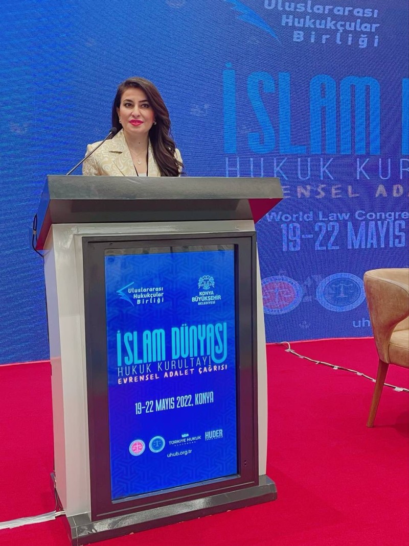 Xanım vəkil Konyada həyata keçirilən 40 ölkədən 250 hüquqşünasın iştirak etdiyi İslam Dünyası Hüquq Konqresində “Ermənistan tərəfindən Azərbaycana qarşı beynəlxalq hüquq və insan haqlarının pozulması” mövzusunda təqdimatla çıxış edib.