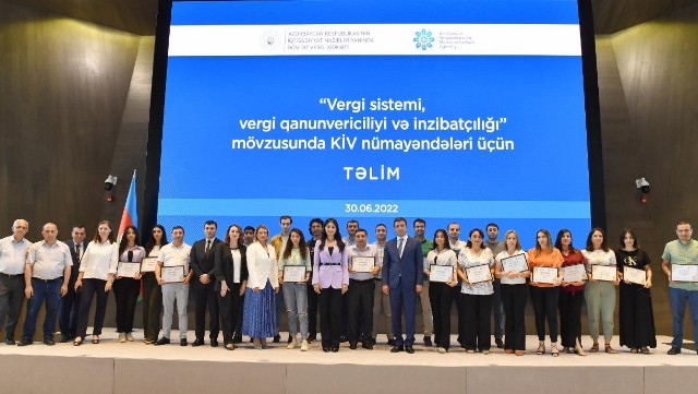 “Vergi sistemi, vergi qanunvericiliyi və inzibatçılığı” mövzusunda keçirilən təlimdə DVX-nin Vergi siyasəti baş idarəsinin Vergi qanunvericiliyi idarəsinin rəisi Rəşad Nuriyev, İqtisadi təhlil və uçota nəzarət baş idarəsinin Sosial sığorta və əmək münasibətlərinə nəzarət idarəsinin rəisi Nigar Vahabzadə və Hüquqi şəxslərin dövlət qeydiyyatı baş idarəsinin şöbə rəisi Leyla Hüseynzadə iştirakçılara təqdimatlar ediblər.