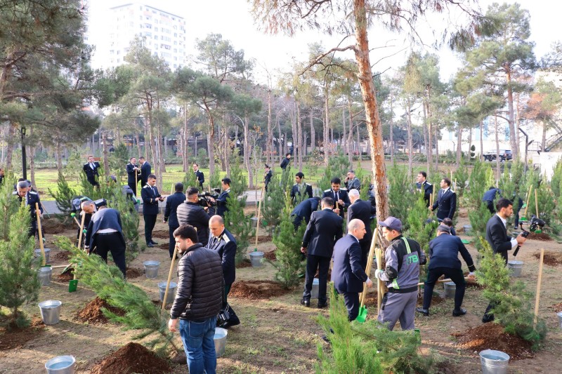 Bundan başqa tədbir iştirakçıları yeni inzibati binanın yanında yerləşən parkda ağaclar əkiblər.