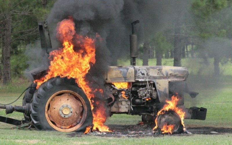 Kürdəmirdə traktor yandı