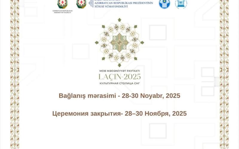 Mədəniyyət Nazirliyi və Laçın rayonunda Azərbaycan Respublikası Prezidentinin xüsusi nümayəndəliyinin təşkilatçılığı ilə 29-30 noyabr tarixlərində Laçın şəhərində “MDB-nin Mədəniyyət Paytaxtı – 2025” ilinin rəsmi bağlanış mərasimi keçirilir.