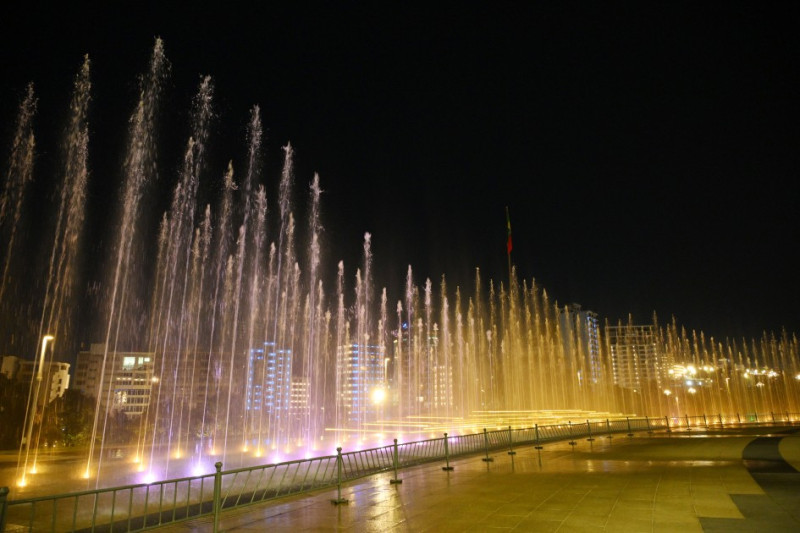 Parkın mərkəzindəki möhtəşəm musiqili fəvvarənin nümayişi ətrafda sehrli bir atmosfer yaradıb. Azərbaycan xalq mahnılarının həzin sədaları altında rəqs edən su damlaları, musiqinin akkordları ilə harmoniya təşkil edərək zərif bir sənət əsərini xatırladıb.